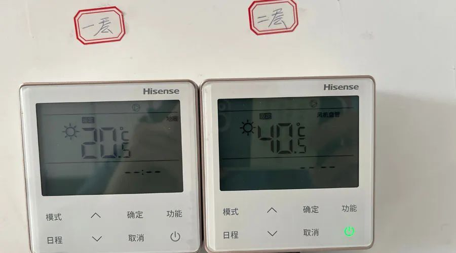 新房子配置的海信红焰机组从2022年11月1日开始运行,出水温度设置在40℃左右时,二楼出租房温度便可达24℃以上。一楼由于有锅炉,因此对出水温度进行了调整,一般设置在30~35℃,室温即可保持在20℃以上。