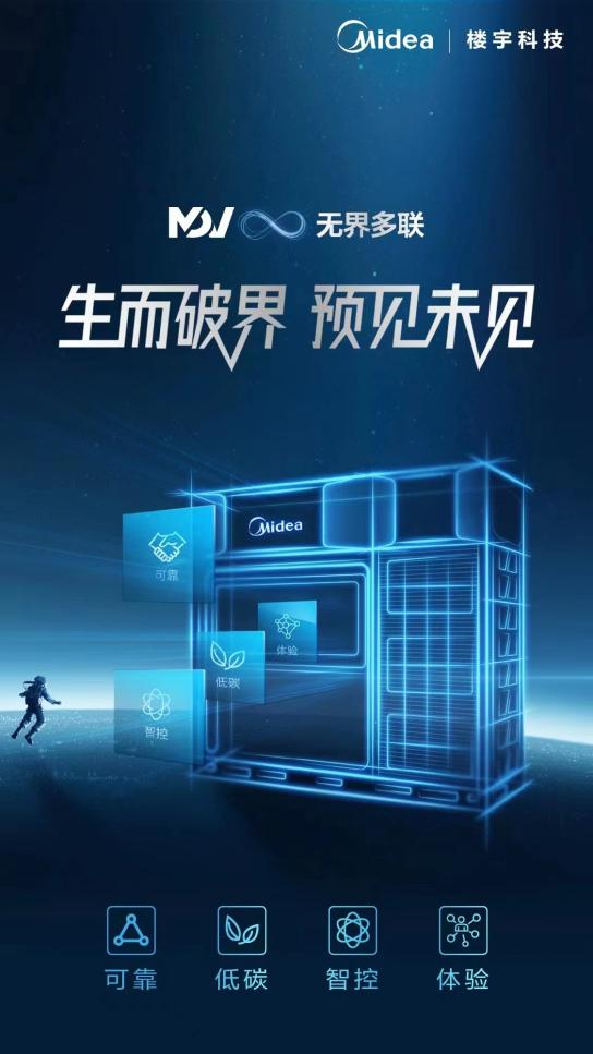 MDV,美的楼宇科技旗下商用多联机专业品牌,致力于成为多联机综合解决方案技术平台。“生而破界,预见未见”,美的最新一代MDV8无界多联机以“1+3”的硬核技术实力,带来一场从“有界”到“破界”的变革。可靠无界,无论何时、何地、何种情境,挑战Non-stop AC,提供前所未有的产品“韧性”;体验无界,稳、准、狠,还原本该如此的舒适,提供美好生活的场景赋能;低碳无界,全生命周期主动节能,共赴“零碳”未来,提供可持续发展的环境承诺;空间无界,打破设计禁锢,释放空间无限可能,提供价值增长的创造与实现。MDV8从“全生命周期的品质、低碳和舒适”出发,让设计不再被设备本身束缚,以创新技术为美好生活带来全新的解决方案,完美契合复杂多样的设计需求,打破建筑空间的禁锢,为多联机带来更为广阔的应用场景。