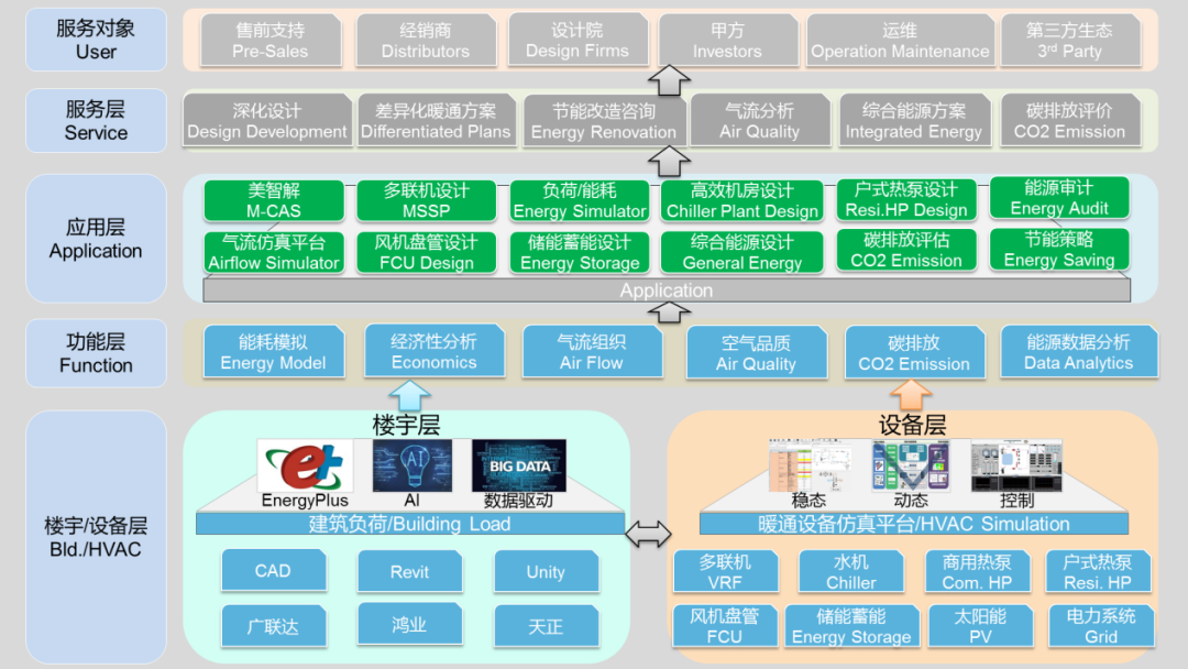 双碳背景下需要针对多联机全生命周期的能效提升开展针对性研究。在设计环节,通过MDV技术中心联合美的中央研究院自主研发的美智解数智化暖通方案设计平台,从建筑负荷诊断、多联机选型设计、室内外气流仿真等智能化设计技术出发,可以有效提升多联机能效,并已在连锁餐饮店、反季樱桃制冷大棚、政府办公楼节能改造等多个行业案例中成功运用。