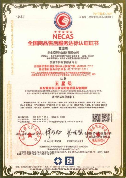 服务臻于细节,完善于标准。LG中央空调在不断完善服务细节的同时,也在提高服务标准,致力于为用户提供更贴心、更放心的服务。凭借于此,LG中央空调不仅赢得了用户的信赖,也收获了行业的权威认证,被授予“售后服务五星级认证”证书。