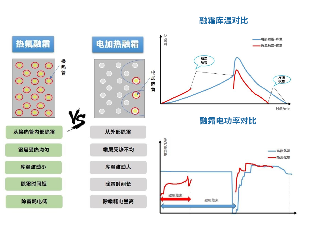 传统的冷库机组冷风机的化霜形式采用电加热化霜,霜层受热不均,热量散失到库内引起库温波动,且除霜时间长。