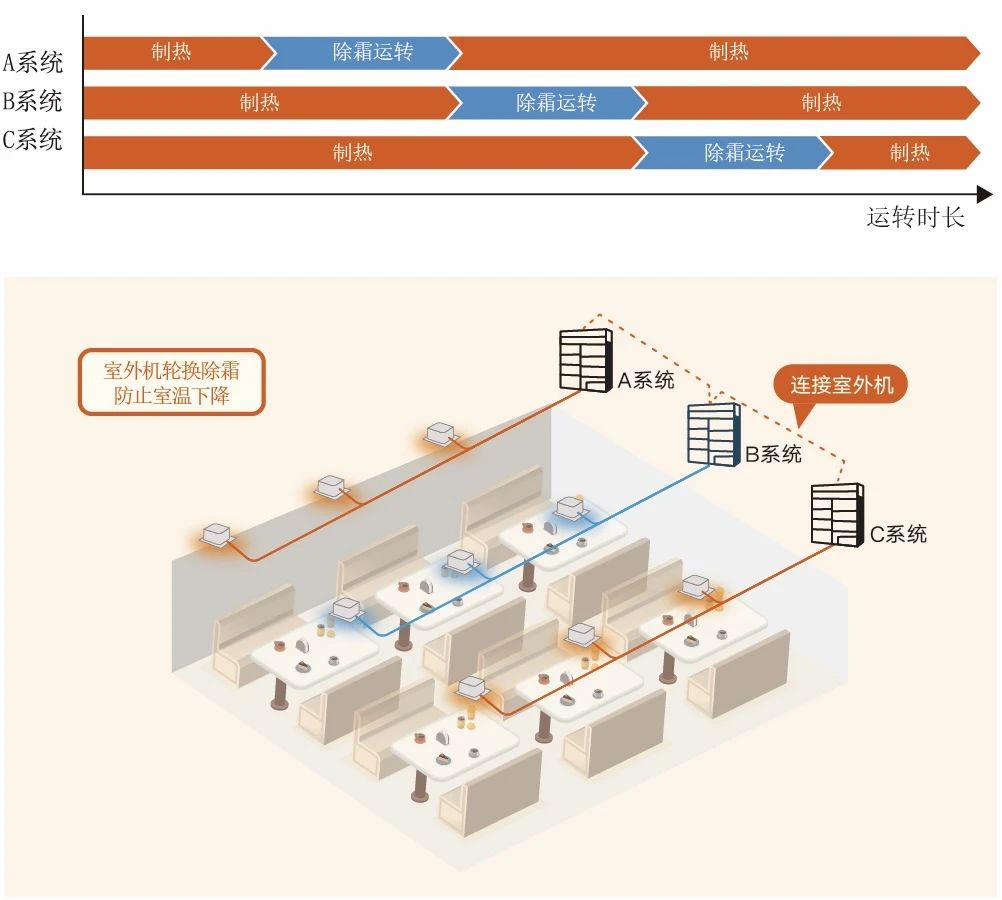 多系统内,设备除霜运转的时间会有序错开,避免同时进行,以保障室温稳定如初。