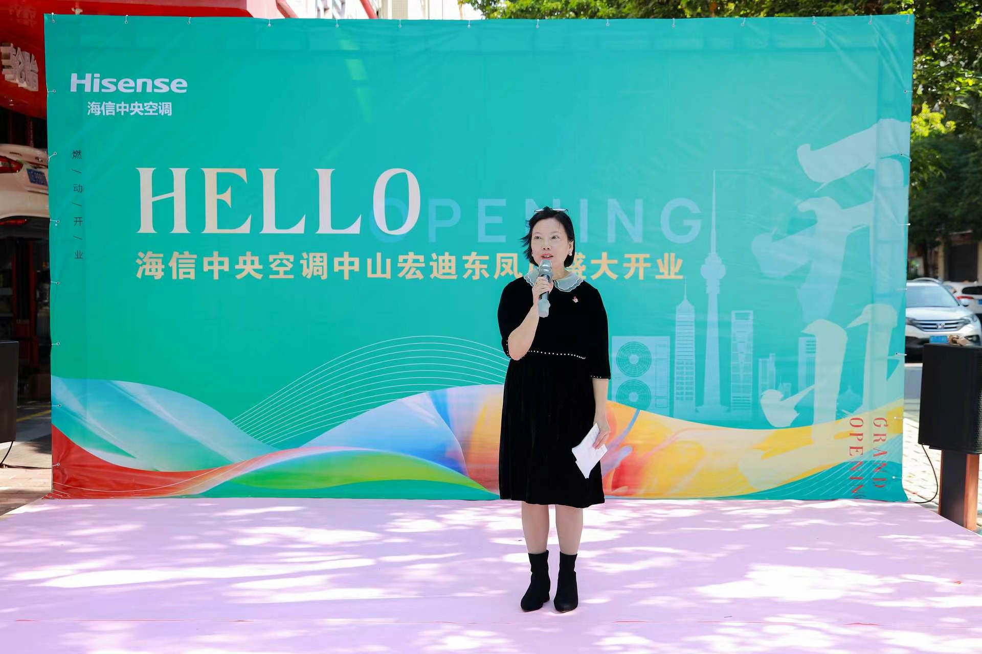 在开业仪式上,中山市宏迪节能科技有限公司总经理何凯燕表示:“我们很荣幸能够成为海信中央空调在中山的合作伙伴。我司作为深耕制冷行业二十余年的企业,一直致力于为客户提供高品质的机电设备工程、暖通、净化等设备销 售及安装服务。此次携手海信中央空调,旨在将海信先进的技术 和卓越的产品带给中山地区的广大消费者。”