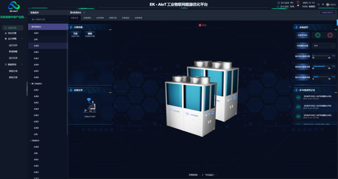 EK空调为项目配置36台超低温空气源热泵,凭借模块化设计实现灵活组合,搭配EK-AIoT智慧云系统打造商住分区独立智能控制体系,满足商业区冬夏冷暖双供、住宅区冬季供暖的差异化需求。