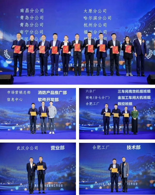会上还对 2025 年度表现突出的先进个人与集体进行隆重表彰,先后颁发数十个奖项,同时邀请四位获奖代表依次上台分享心得,多角度展现了凯泉人实干担当、奋勇争先的精神风貌,为全体同仁树立了学习榜样。