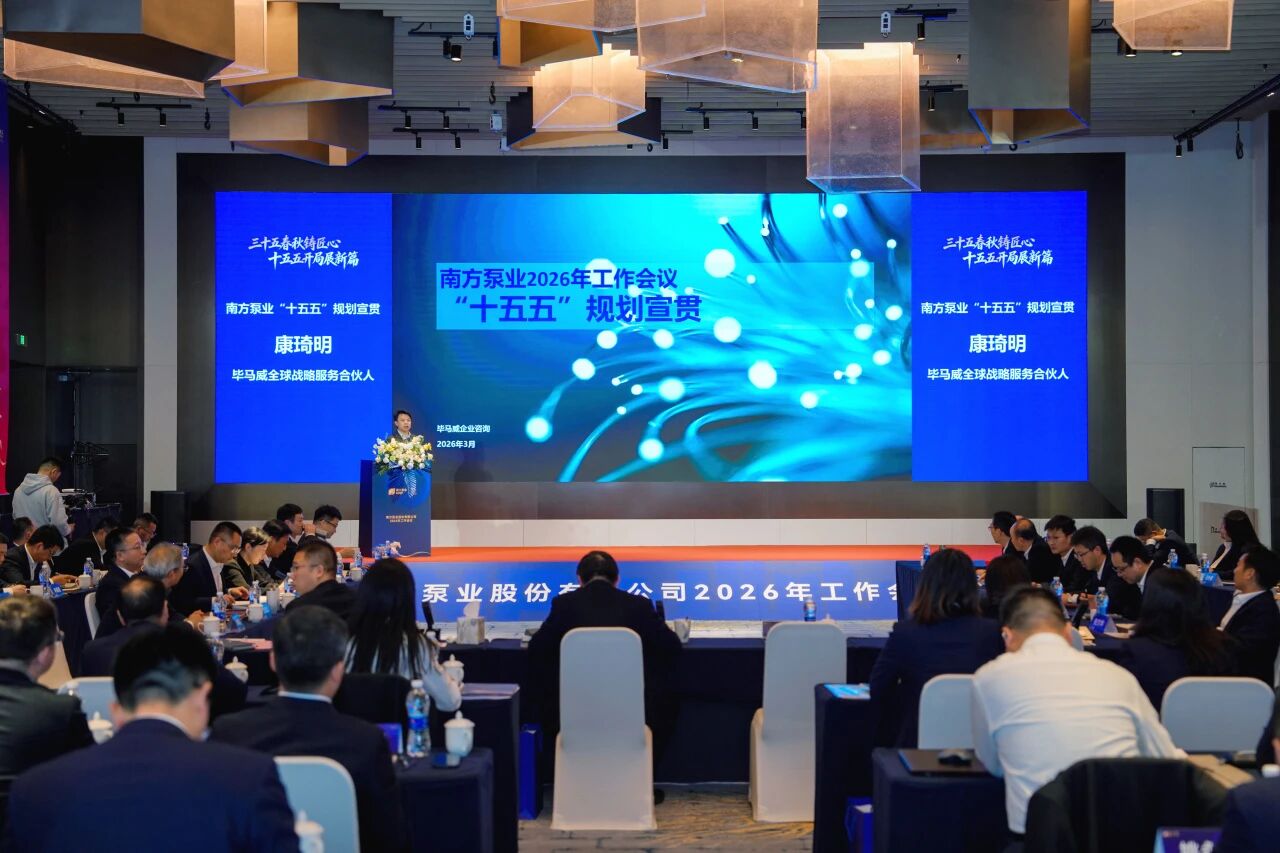 3月12日,南方泵业2026年工作会议圆满召开。会议全面回顾总结了公司“十四五”以来取得的工作成绩,深入研判当前形势,系统部署2026年重点任务,为“十五五”开好局、起好步明确目标路径、凝聚奋进力量。市市政集团党委副书记、总裁夏斌出席会议,公司全体领导班子成员、各事业部领导、各分子公司负责人、总部各部门负责人等参加会议。