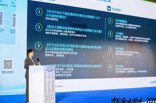 赛莱默中国水基础设施应用经理李芳针对潜水设备改造方案研究:助力污水厂节能降本作了主题演讲,向在场的1000多位污水提标改造和提质增效、污水资源化利用等领域的专家和用户,简明扼要地讲解了涵盖设备优化、智能控制和数字化管理的赛莱默全方位解决方案,助力污水厂泵站提升能效、降低碳排放,实现高效稳定运行。