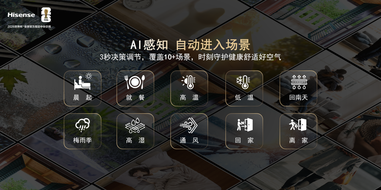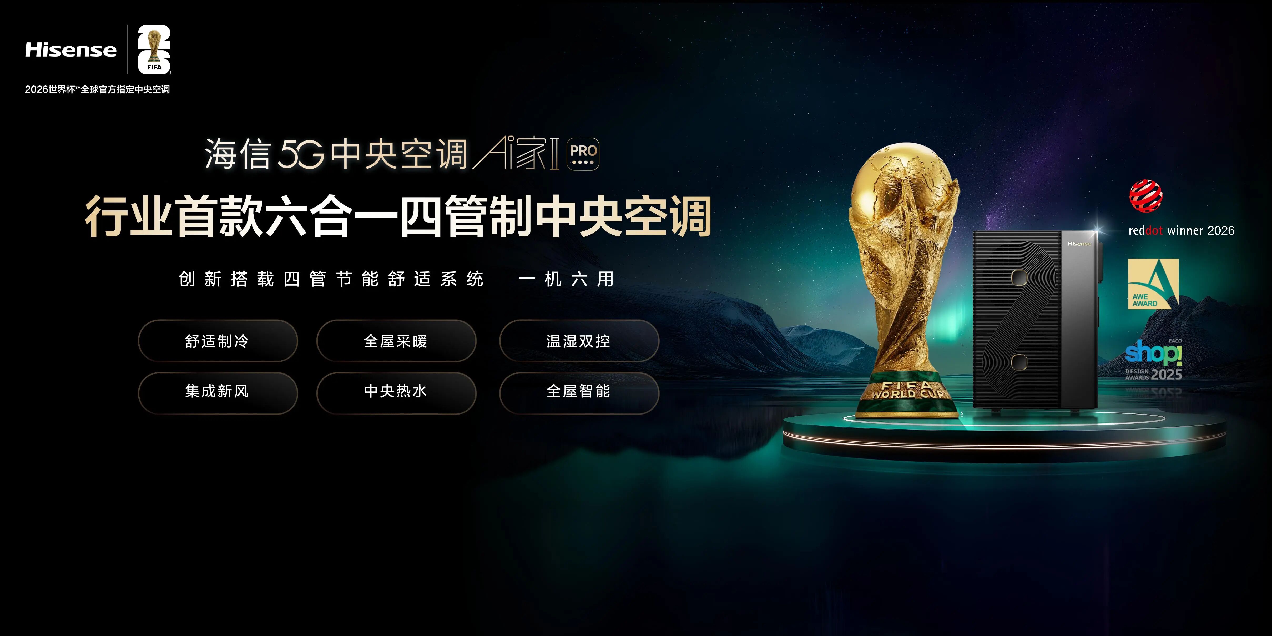 以科技驭空气,以智慧启舒居。4月8日,中国制冷展如期启幕,行业目光齐聚于此。作为2026世界杯全球官方指定中央空调,海信中央空调以“Ai智启未来空气家”为核心主题,重磅发布海信5G中央空调Ai家IIPRO高端全场景新品。