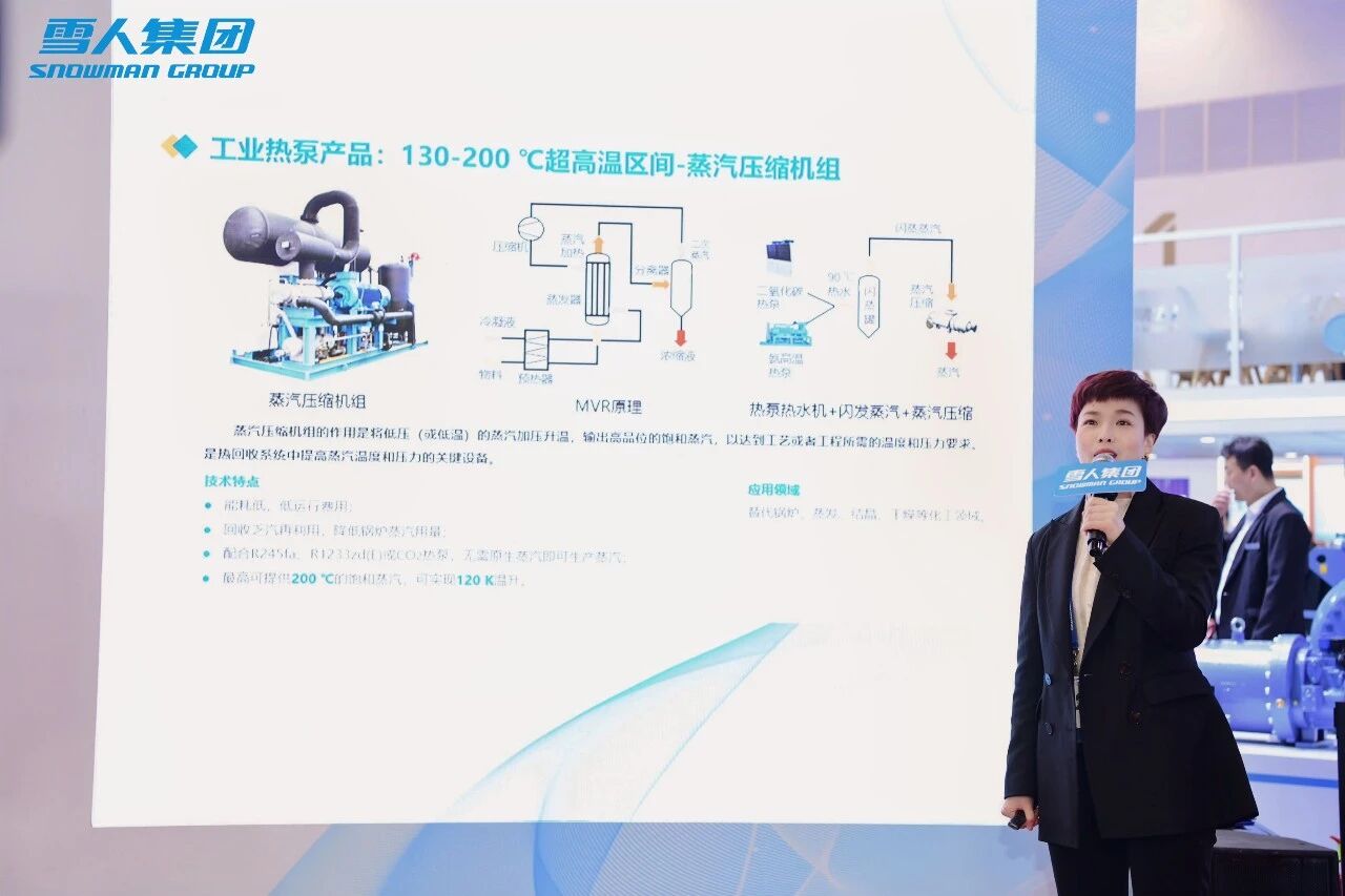 本次展会,雪人集团集中发布了9款热泵明星展品。在庆典仪式上,雪人集团副总裁林云珍女士、RefComp产品线总经理张功旺先生先后分享了雪人热泵产品家族及诚意招商策略。