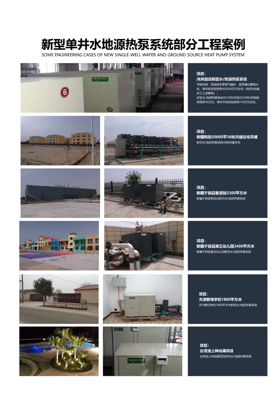 解决了水源热泵提水、回灌问题;提水回灌只用一口井或一口提水井对应一口回灌井就可以做到100%同层回灌,不消耗、不浪费一滴水资源,使水源热泵的应用不再受国家政策的限制,打井造价只是原来的三分之一。