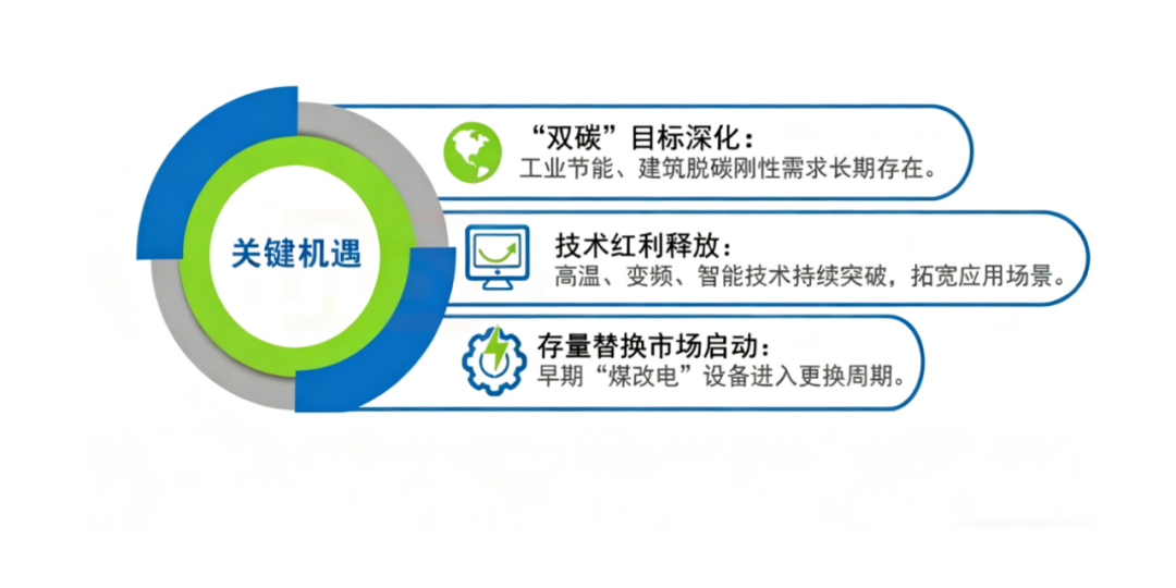 早期“煤改电”政策下投入使用的设备已逐渐进入更换周期,叠加新建筑、新工业项目的新增需求,空气能市场形成“存量替换+增量增长”的双驱动格局。
