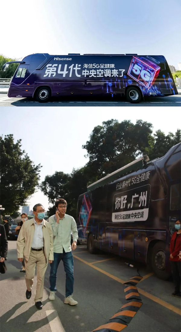 在颁奖现场,将智慧健康空气解决方案带到全国的海信巡展巴士也惊喜亮相,吸引了现场许多专家和参会人员的关注,他们登上大巴,详细了解了海信中央空调的健康科技并进行了体验,并表达了肯定和赞许。这辆搭载着海信5G全健康中央空调的巴士,从青岛出发,历时百天,途径天津、北京、上海、苏州、长沙、成都等数十个城市,通过打卡知名景点、现场空气监测数据、用户体验等形式,将海信中央空调的智慧空气解决方案带到不同城市的用户身边,让更多人能够分享最新的行业第四代中央空调的技术成果,将智慧健康空气的种子播撒向更多地方。