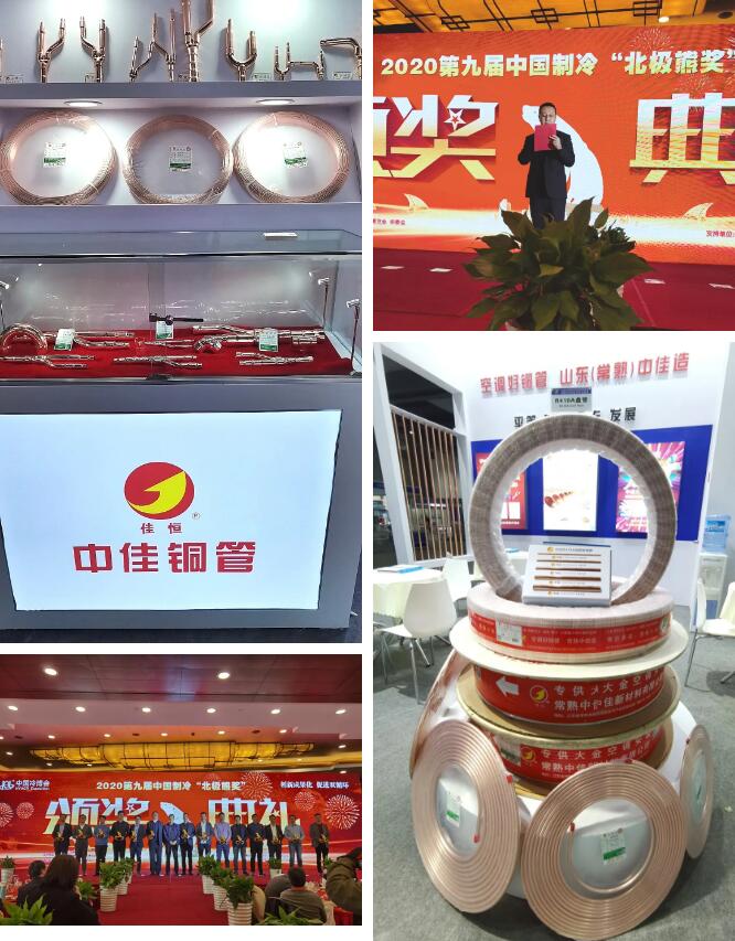 2020年11月30日,以“创新成果化、促进双循环”为主题的第二十一届中国制冷、空调与热泵节能博览会在上海隆重举办,中佳铜管亮相本次博览会并独家赞助第九届中国制冷‘北极熊’奖。