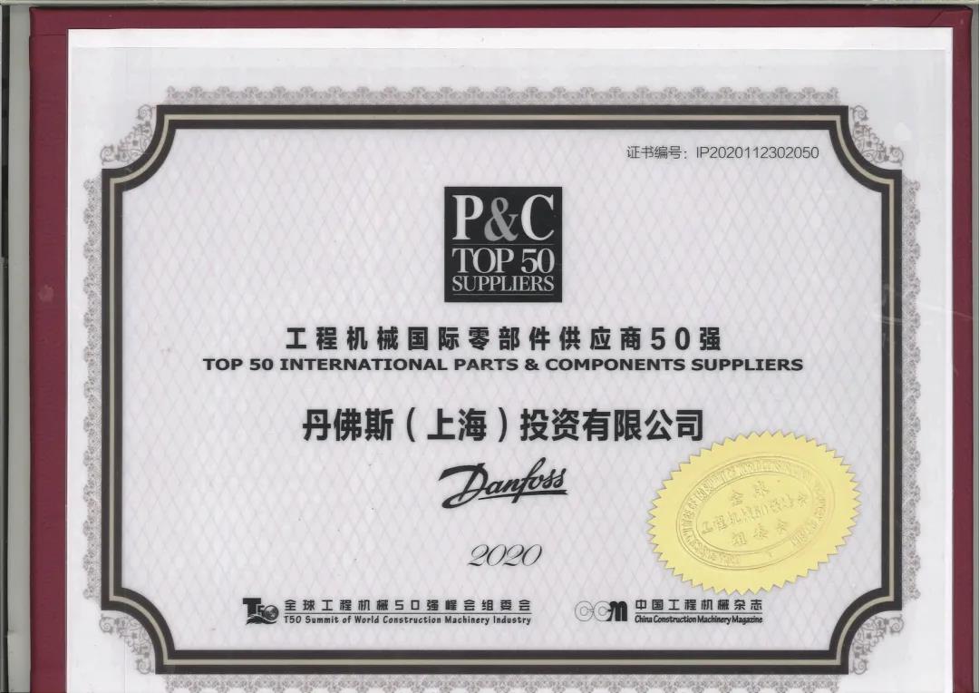 丹佛斯荣获“2020全球工程机械零部件供应商50强”