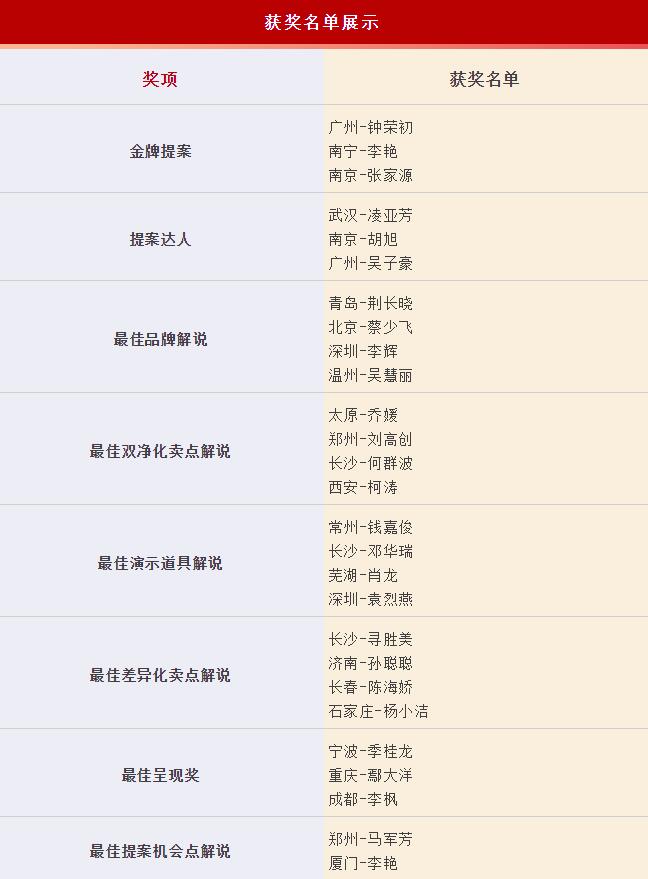 从分公司赛段到大区赛,再到全国总决赛,历经8个月的日立杯金牌销售提案大赛终于圆满落幕。27强选手经历层层角逐,最终凭借扎实的行业知识、精妙的销售技巧以及良好的精神状态与礼仪规范,分别斩获8项大奖,其中来自广州赛区的钟荣初、南宁赛区李艳、南京赛区张家源三位选手,凭借超强实力,夺得“金牌提案”头衔。