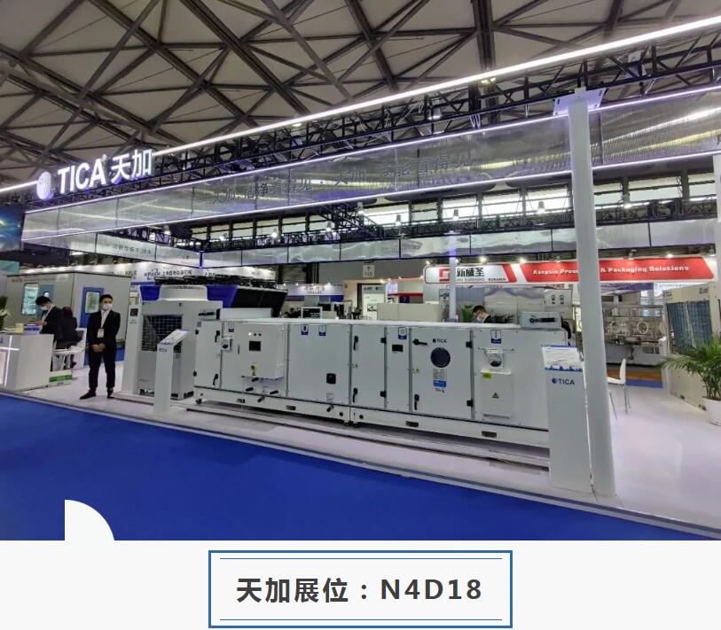此次天加以细分市场制药行业的厂房净化系统解决方案为主,携风冷磁悬浮机组和数码直膨净化机组等产品亮相展会,全面展示了制药行业所需的高效、节能、净化、恒温恒湿等解决方案。同时针对海外市场的需求,天加还展出了变频模块机和TIMS Hyplus洁净多联机的组合方案。