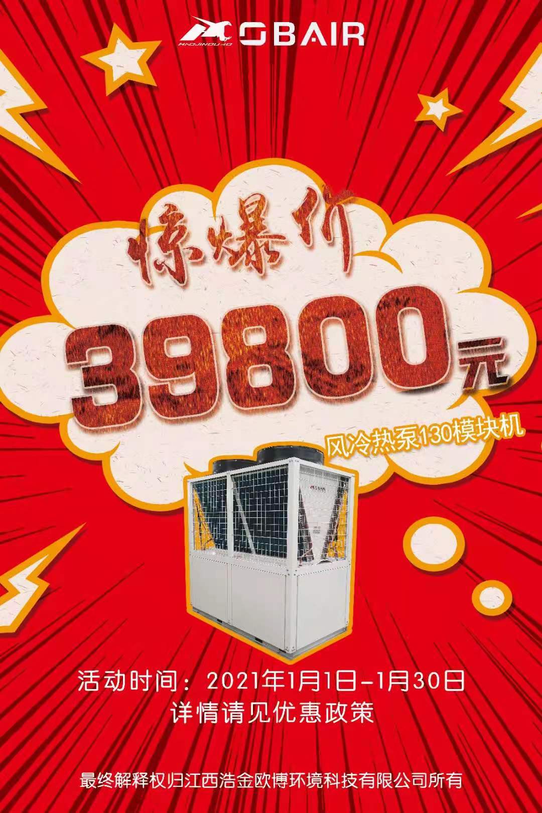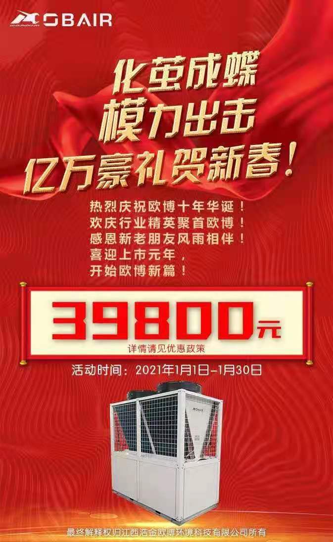 但是,凡事总有例外。近日,欧博空调就发布了一则为期一月的降价让利活动通知,旗下主力机型130风冷热泵模块机组将从2021年1月1日开始,截止到2021年1月31日,整整持续一个月时间享受最低优惠39800元,让人诧异之余又倍感振奋,该活动的推出促进了新老用户之间的亲密互动,并以最大的优惠幅度回报了新老用户,成为了中央空调企业涨价潮中的“一股清流”。