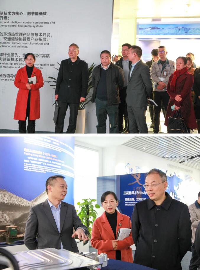 12月25日,浙江省税务局二级巡视员俞国建、第二税务分局局长黄平水、杭州市税务局进出口税收管理处副处长金晓军、杭州经济技术开发区税务局局长蒋晓军等领导一行调研三花杭州工业园。三花控股集团董事、副总裁陈金玉,董事倪晓明和集团财务系统相关负责人接待。税务局领导一行参观了三花展厅,重点了解了三花的出口业务和全球化布局情况。