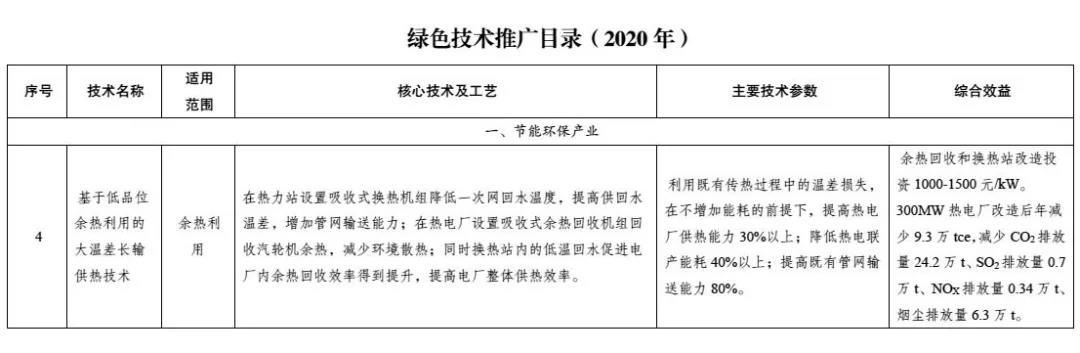 华源泰盟“基于低品位余热利用的大温差长输供热技术”入选国家四部委《绿色技术推广目录》并位列第四