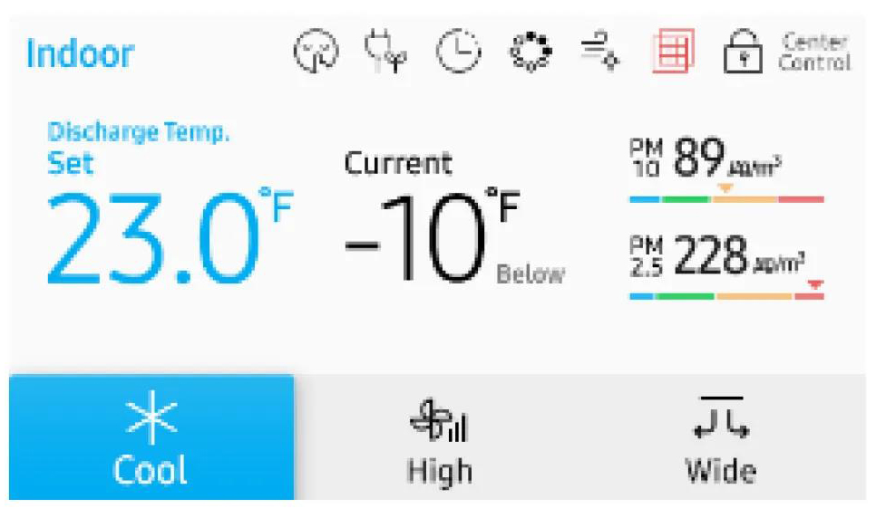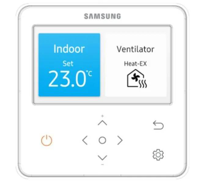 传统线控器都是单色屏幕(与三星传统产品比较),很容易造成视觉疲劳感,密密麻麻的操控图标不够直观明了,三星全新彩晶线控器,拥有4.3英寸彩色屏幕,直观显示操作功能,方便查看菜单栏。内置深度能源监测器,对每周、每月、每年电力消耗及能源使用情况进行跟踪监测。