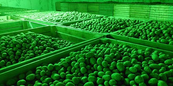 这一先进的系统使仓库的温度保持在恒定3℃,湿度保持在90%—95%,绿光照射可使土豆保鲜更久。(照片来源| 依必安派特)