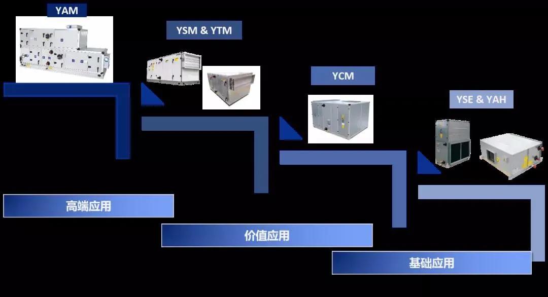 约克空气处理机组家族拥有从标准型、紧凑型、定制型到高定型等多款机型众多型号,形成覆盖基础应用/价值应用/高端应用三个层次的强大产品布局。如今,新成员约克YTM的加入,将以更为细分的产品线布局,全面满足多元化、个性化的市场需求。