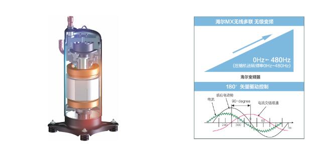 海尔物联多联机采用直流变频柔性涡旋高压腔压缩机,高效运行,稳定可靠;及先进的180°正弦波无位置传感器矢量控制技术,配合无级变频直流电机,大大降低机组能耗;另外,机组IPLV(C)最高可达10,远超国家一级能效标准;卓越的弱磁控制技术,大幅度提升压缩机效率;压缩机油温控制技术,待机功率可降低45%,节能高效。