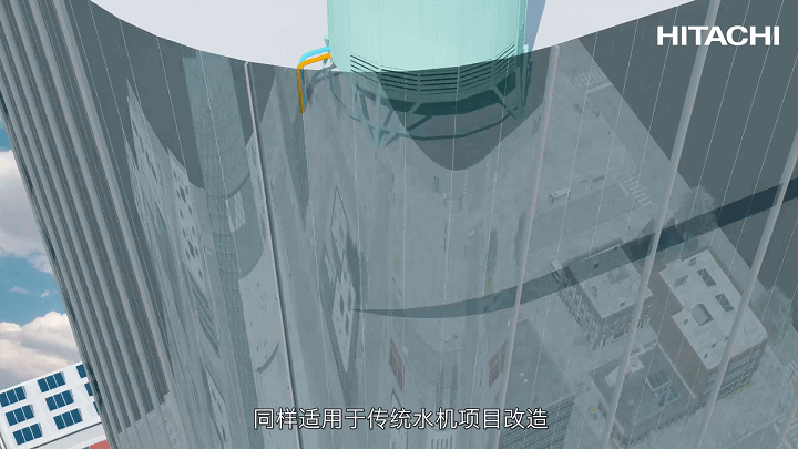 建筑中选用的传统水机,但是个别楼层面临加班、周末开会等情况,日立借助原水系统的条件选择水源机,直接接入原冷却水系统,满足周末加班等特殊时段空调需求,助力超高层建筑舒适升级。