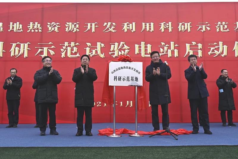 1月25日,山西省委常委、大同市委书记张吉福、副省长贺天才、副秘书长高建军、省地勘局局长彭东晓、中国地质大学(武汉)校长王焰新等领导出席山西省高温地热资源科研基地揭牌暨试验电站启动仪式。