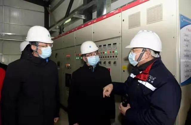 天加董事长蒋立向山西省委常委、大同市委书记张吉福(中)、副省长贺天才(左)汇报机组运行情况