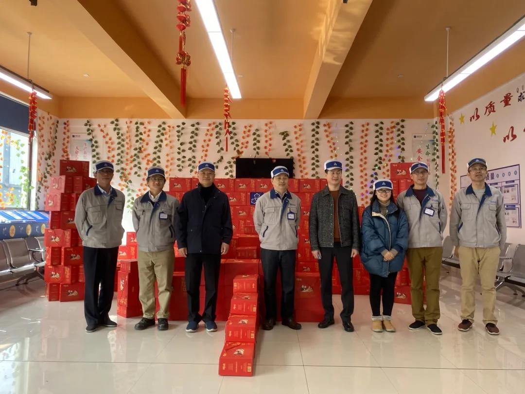 在三花汽零滨海工厂,控股集团董事局副主席张亚波、三花汽零总经理史初良等公司领导,一早就来到了工厂现场。张总听取了工厂整体情况的汇报,表达了对大家的衷心感谢,分享了工厂面临的机遇,希望每一位干部员工不断努力,与公司共成长共发展。张总还为一线员工,一一送上了集团精心准备的新年礼品。