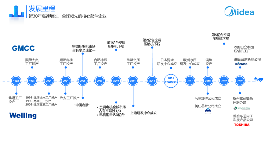 2021年3月1日,美的机电事业群完成对泰国日立压缩机工厂的业务交割(2020年12月24日已完成收购Hitachi Global Life Solutions, Inc.所持有的100%股份),工厂正式更名为GMCC and Welling Appliance Component (Thailand) Co., Ltd. (以下简称GAT),这标志着美的机电事业群首个海外基地正式投产。