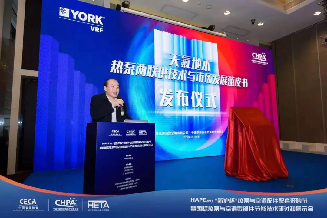3月3日,在HAPE2021热泵与空调配件配套采购节暨国际热泵与空调零部件节能技术研讨和展示会上,由中国节能协会热泵专业委员会联合青岛江森自控空调有限公司等单位一起编撰的《天氟地水热泵两联供技术与市场发展蓝皮书》同期发布。发布仪式由中国节能协会热泵专业委员会常务副秘书长赵恒谊主持。