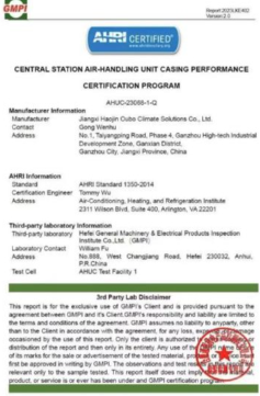 近日,欧博ZKW全系列组合式空气处理机组凭着优异的性能顺利通过合肥通用机电产品检测院(GMPI)的权威检测并取得美国AHRI认证,此认证表明,欧博产品在设计、制造和质量方面的实力和技术水平已达到了国际领先水平。