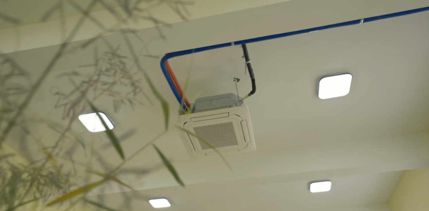 考虑到5匹的风管机噪音相对稍大,海信采用了降噪方案。在使用前把两套设备都打开,让空间温度整体下降,随后在音乐厅正式开始使用的时候,只需要将5匹的风管机关闭,使用一拖四的多联机来维持室内的温度,这样就能够在保证室内凉爽的同时做到出色的噪音控制。