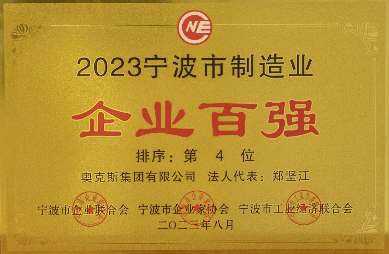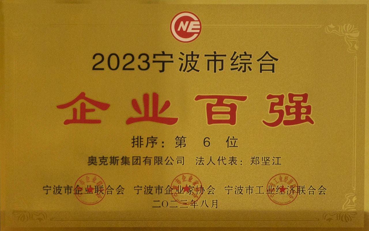 奥克斯荣获2023宁波市综合百强第6位等2项殊荣