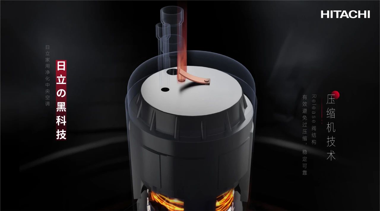 1983年,日立发明世界上第一台涡旋式空调压缩机;2003年,日立在业内首次推出具有内部油分离功能的新型高压腔涡旋压缩机,针对R410A制冷剂的高压特性,特别设计了不对称涡旋盘,并且强化了轴承结构,将压缩机的效率和可靠性进一步提升。