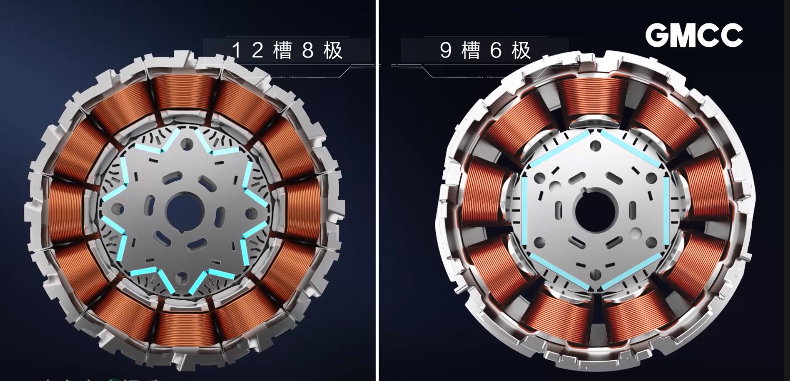 针对行业共性痛点—压缩机电机倍频噪音,GMCC美芝发明的谐波磁场调制技术,磁场谐波下降了40%
