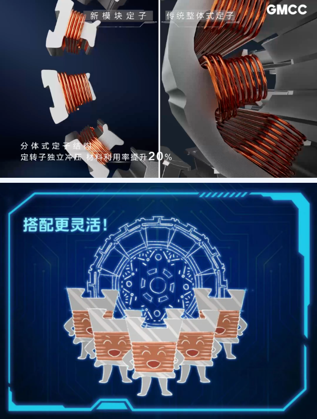 大幅提升了电机功率密度和能效,实现压缩机能效、噪音、体积上全方位的升级和加强。