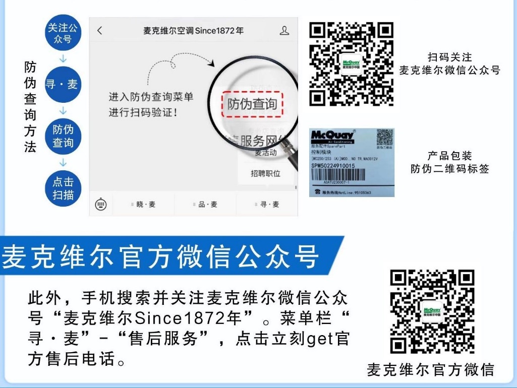 售后维修请认准麦克维尔官方服务配件查询配件真伪,质量有保障。