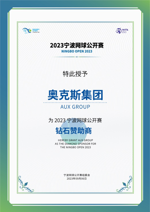 奥克斯携手2023宁波网球公开赛 助推中国体育事业新发展
