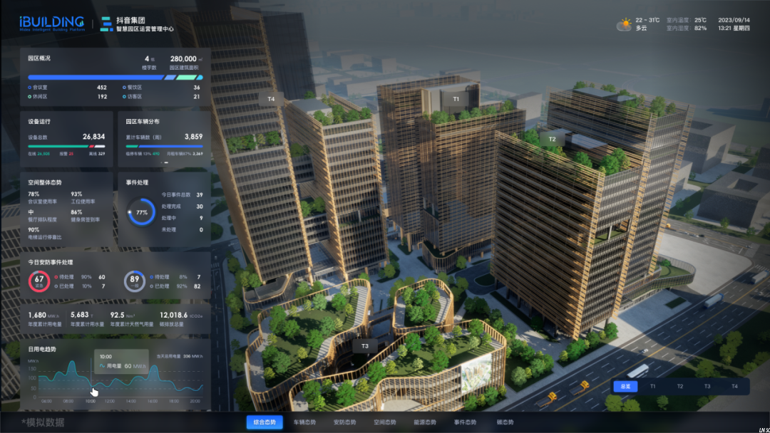 抖音集团位于上海新江湾城的办公园区,总建筑面积约为28万平方米,包括办公、商业等业态,总计4栋办公楼,预计可容纳1.2万员工办公和消费。美的楼宇科技iBUILDING与火山引擎边缘云深度合作,双方基于智慧建筑数字化总承包DEPCO理论体系,围绕低碳节能和高效运营两大主线,共同打造了“1+7”智慧园区综合解决方案,为园区注入绿色数字化的智慧灵魂。