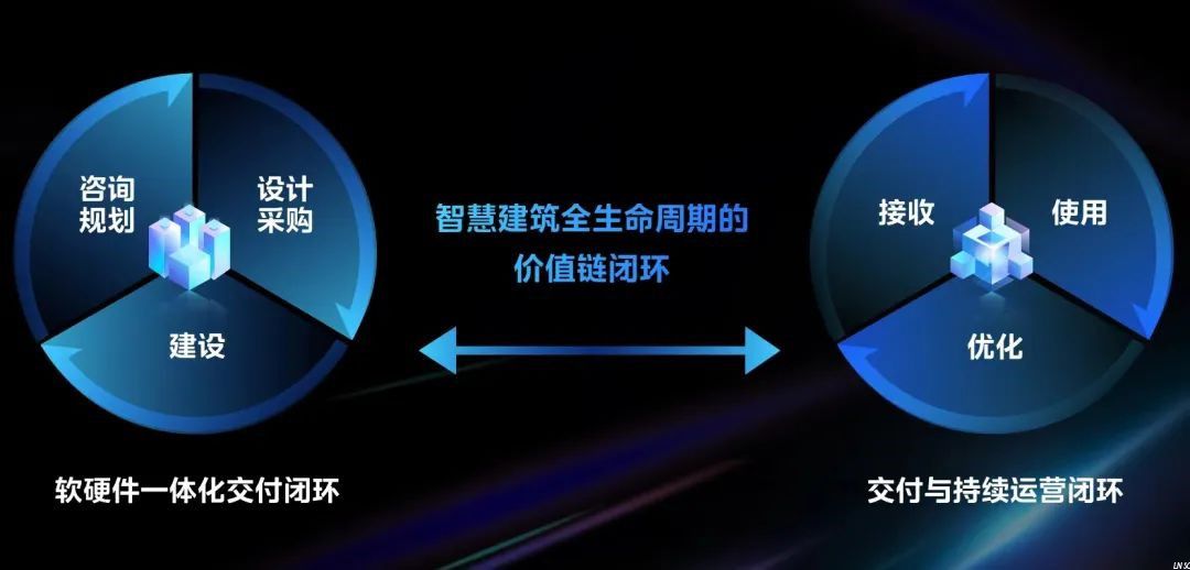 在此次项目建设过程中,智慧建筑数字化总承包(DEPCO)模式贯穿始终,坚持以人为本,以运营目标为导向,实现“软硬件一体化交付”和“项目交付与持续运营”的全生命周期的价值链闭环。从前期规划设计阶段开始,围绕项目建设需求,通过需求调研、对标分析、方案设计,梳理出128个智慧建筑场景,其中有7个重点场景、3个基础场景以及5个未来可扩展场景。
