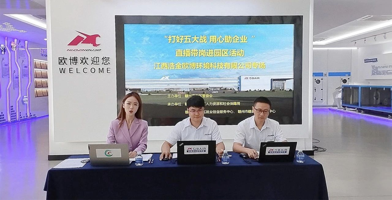 9月19日上午,由赣州市高新区管委会主办,赣县区人力资源和社会保障局、赣县区就业创业服务中心、区融媒体中心承办的“打好五大战,用心助企业”直播带岗进园区活动走进赣县区制造业头部企业——欧博空调,旨在搭建园区、企业与社会沟通的桥梁,进一步优化营商环境,助力实体经济高质量发展;同时也是欧博将招聘关口前移的有效尝试!