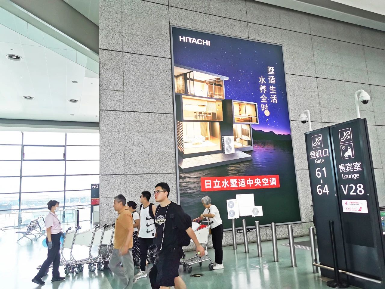 日立中央空调机场灯箱广告再次来袭,本次机场广告的上刊投放包括上海虹桥航站楼的登机口及候机厅等主要通道。