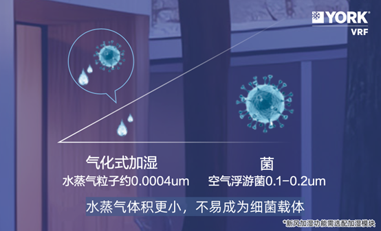 增加了中央加湿功能的约克新风系统,将加湿器串联在新风主管道上,采用自然蒸发的原理,使蒸发后的水以气体方式通过风口扩散到空气中,达到全屋加湿的作用,水蒸气粒子的体积比空气浮游菌更小,不会携带细菌等杂质。使用抗菌材质的非储水式末端加湿设计,可以省去日常手动加水的麻烦,结合定时自动淋水冲洗和自动吹干功能,从源头保障水蒸气的洁净度,有效预防呼吸系统疾病。结合约克VRF中央空调的多档除湿功能,大家可以根据室内外湿度的变化,自由定义居家空气的湿度范围,实现全屋干湿平衡,享受更精细控湿带来的舒适体感。*新风加湿功能需选配加湿模块