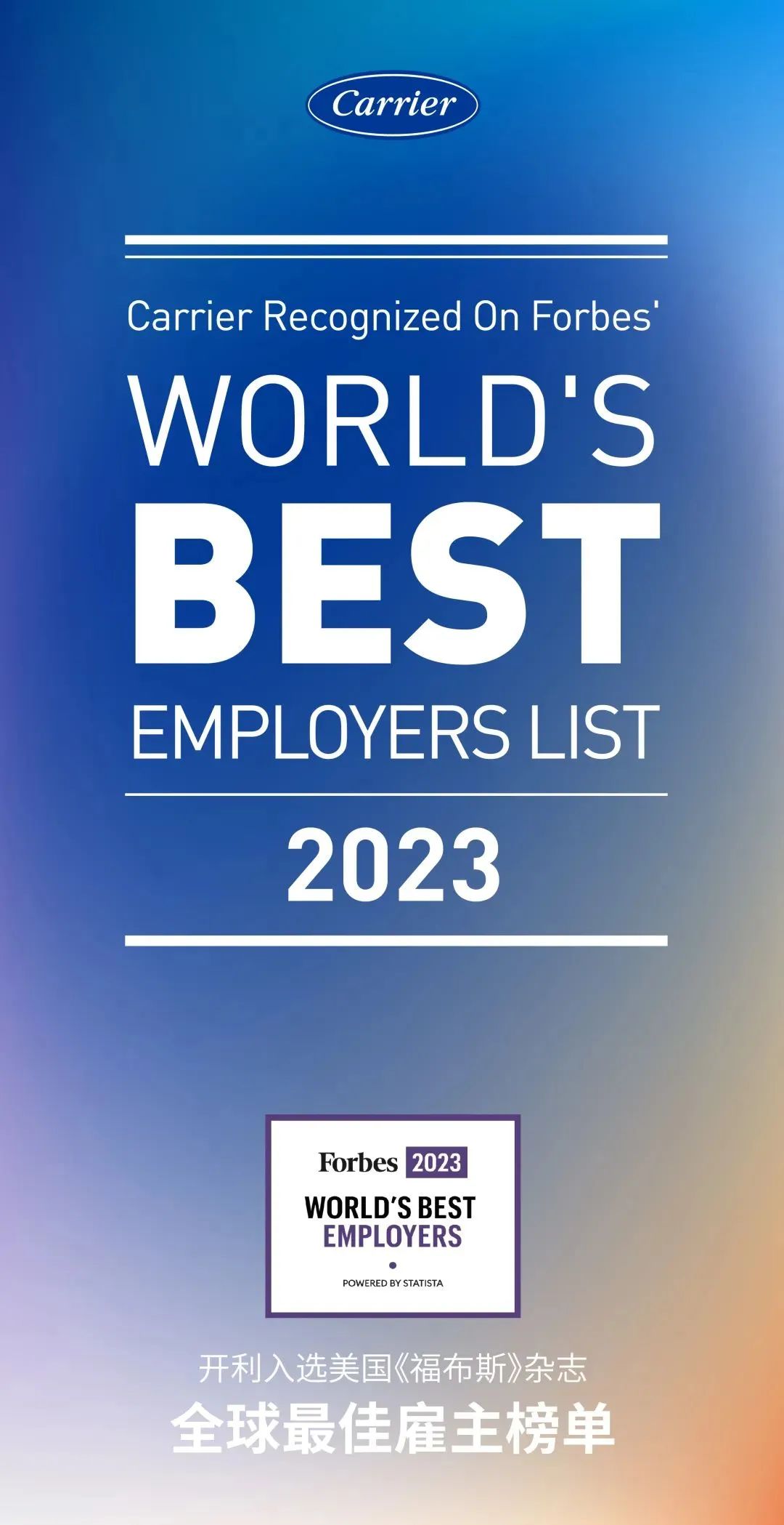 开利入选美国《福布斯》2023年全球最佳雇主榜单