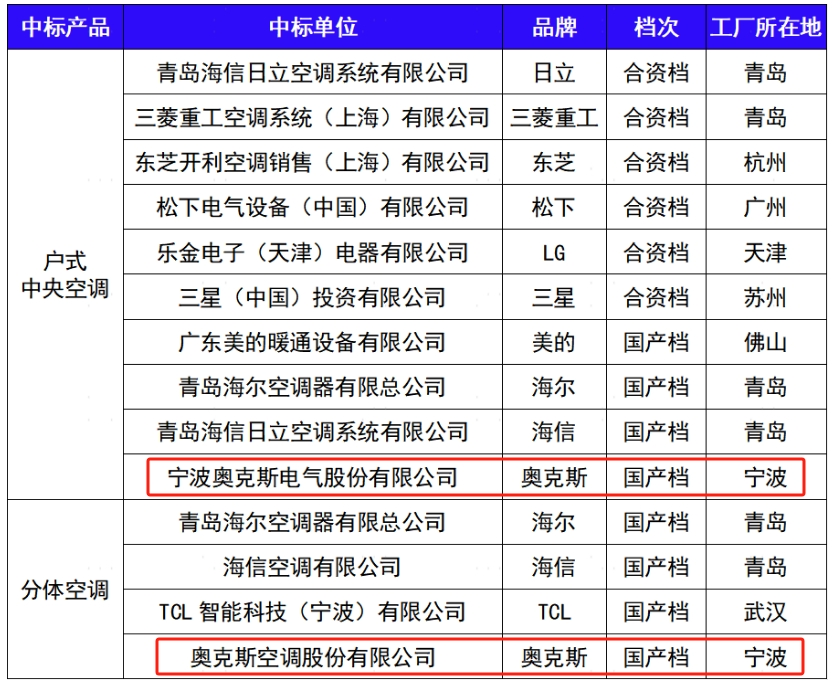 奥克斯中标2023-2025年度采筑平台户式中央空调、分体空调联采