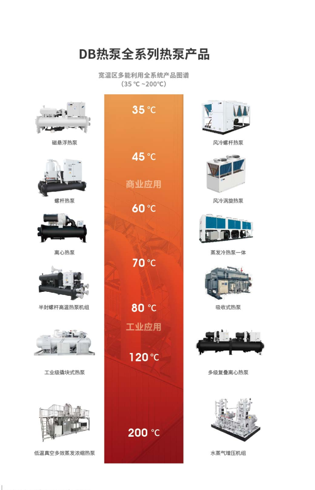 在低碳供热领域,顿汉布什拥有空气源、水地源、工商业余热利用等全品类多效热泵产品矩阵,适合住宅小区、区域能源站、商业建筑、工业生产、农业领域、制药领域、食品行业、生活热水多套全场景解决方案。
