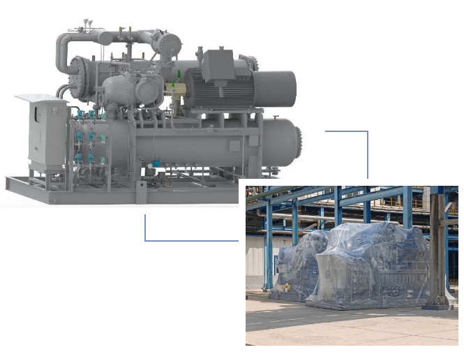 项目采用2套GES开启螺杆式压缩冷凝机组,制冷剂R717,用于在ABS装置中的PBL氨冷站中冷却其他环节产生的过热氨气。